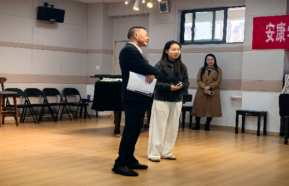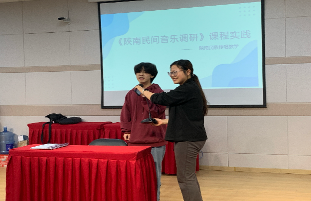 8日下午,课程组教师和田洪涛主任及随行王老师带领大家在2314大教室进行《陕南民间音乐调研》课程实践活动。实践活动包括传承人田洪涛及王燕现场演唱、陕南民歌传承人访谈、学生演唱各地民歌、民歌学唱大PK(民歌传声筒游戏)、AKU合唱团演绎紫阳民歌小合唱《郎在对门唱山歌》等。实践活动内容丰富准备充分,学生参与热情高涨,课程教学取得良好的效果。